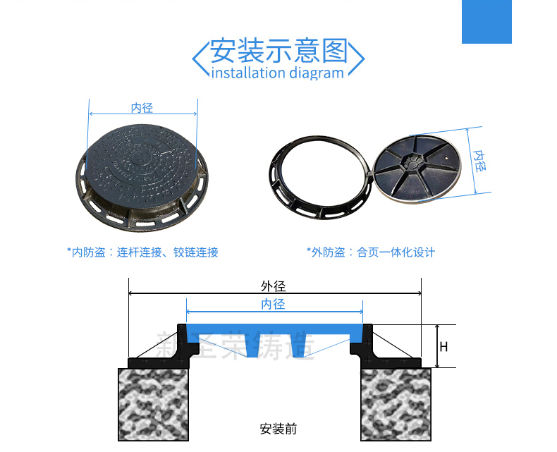 - 應用范圍:重量類型:適用于城市道路和快車道。 普通型:適用于車道 輕量化:適用于非機動車道、住宅小區、公園廣場、 工廠,學校,醫院,綠化帶。