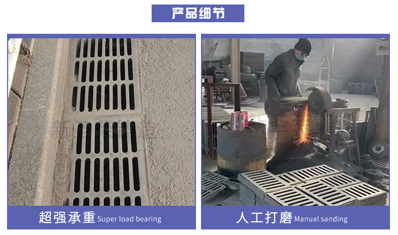 1.鑄鐵雨水口篦子具有較強的抗壓、抗彎、抗沖擊、耐熱、耐寒、耐酸堿、耐老化等性能,采用鉸鏈聯結或者采用鉤聯接等方式,便于開啟,防盜,不易丟失。